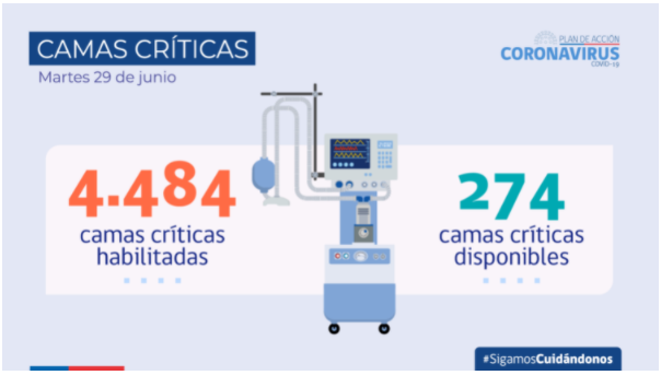 A la fecha, 3.017 personas se encuentran hospitalizadas en Unidades de Cuidados Intensivos, de las cuales 2.580 están con apoyo de ventilación mecánica. Con relación a la Red Integrada de Salud, existe un total de 274 camas críticas disponibles para el paciente que lo requiera, independiente de la región donde se encuentre.