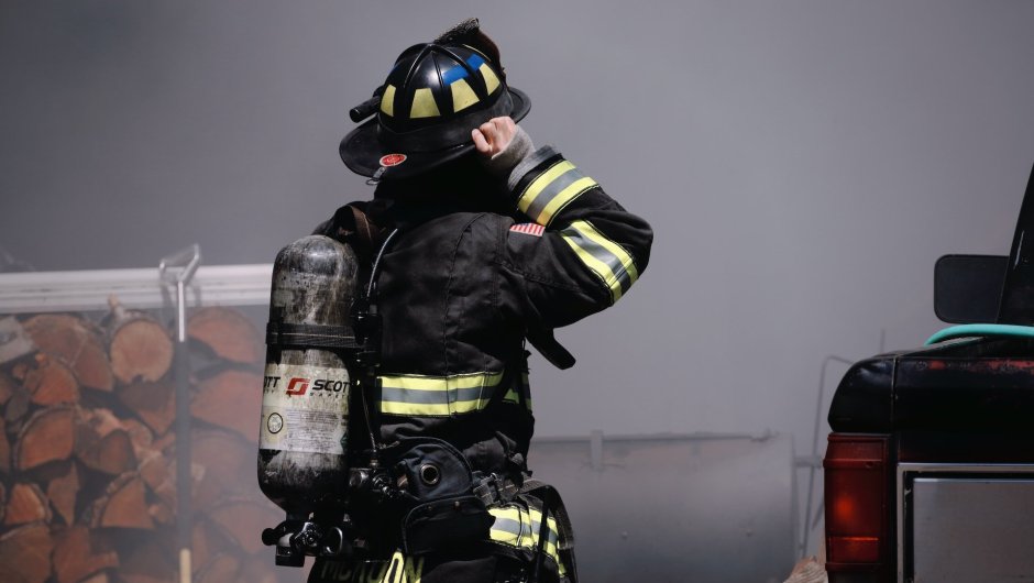 El uniformado utilizó un napoleón para liberar al animalito antes de que lo alcanzaran las llamas.