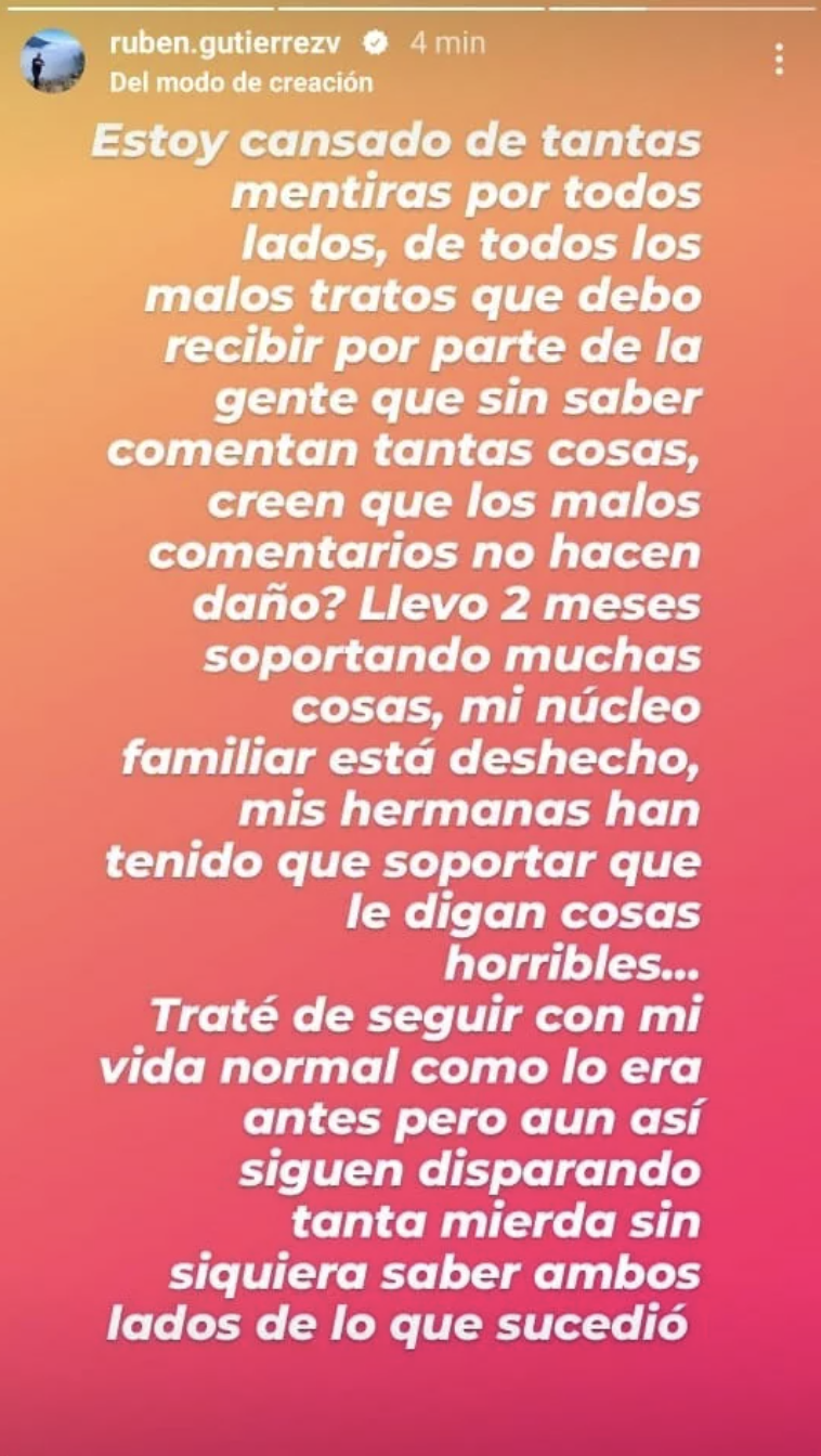 Rubén Gutiérrez, exparticipante de Gran Hermano, alzó la voz en su cuenta de Instagram sobre el hostigamiento que recibe en sus redes sociales.