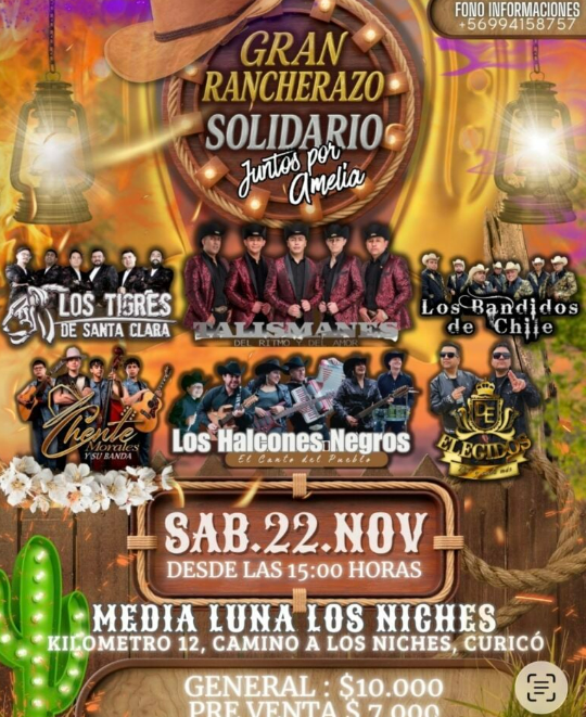Con el fin de reunir los recursos necesarios para este viaje, familiares y amigos han organizado diversas actividades solidarias, entre ellas bingos, lotas y rifas. Ahora, convocan a toda la comunidad a participar del “Rancherazo Solidario: Juntos por Amelia”, que se realizará el 22 de noviembre en la medialuna de Los Niches.