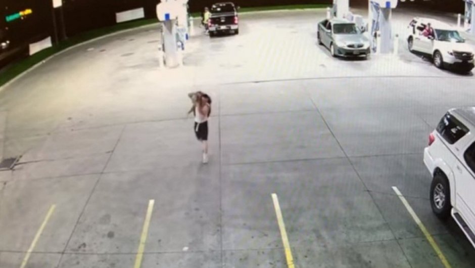 Registran momento exacto en que hombre secuestró a una mujer en una gasolinera
