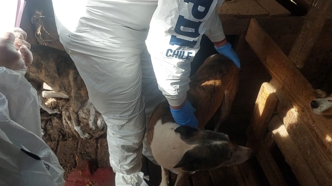 Detectives de la Brigada Investigadora de Delitos Contra la Salud Pública y Medio Ambiente (Bridesma) Metropolitana, en virtud a una denuncia por maltrato animal e instrucción particular de la Fiscalía Local de Curicó, se trasladaron a un domicilio ubicado calle Rincón de Mellado, comuna de Sagrada Familia, con la finalidad de verificar el estado de salud de los ejemplares caninos objeto del delito.