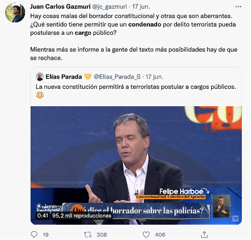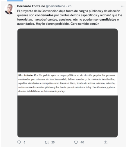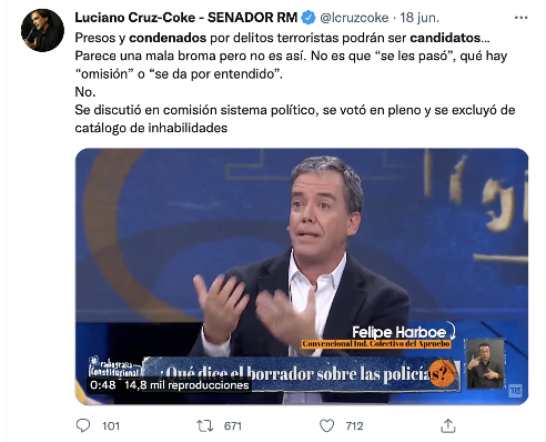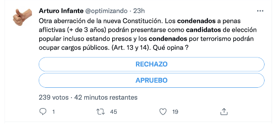 Un intenso debate se generó en redes sociales, tras viralizarse el extracto de una entrevista al académico, doctor en derecho y profesor de derecho constitucional, Sebastián Soto en el que señalaba que, de aprobarse el borrador Constitucional, una persona condenada por homicidio y desde la cárcel podría ser candidato a cualquier cargo de representación popular.