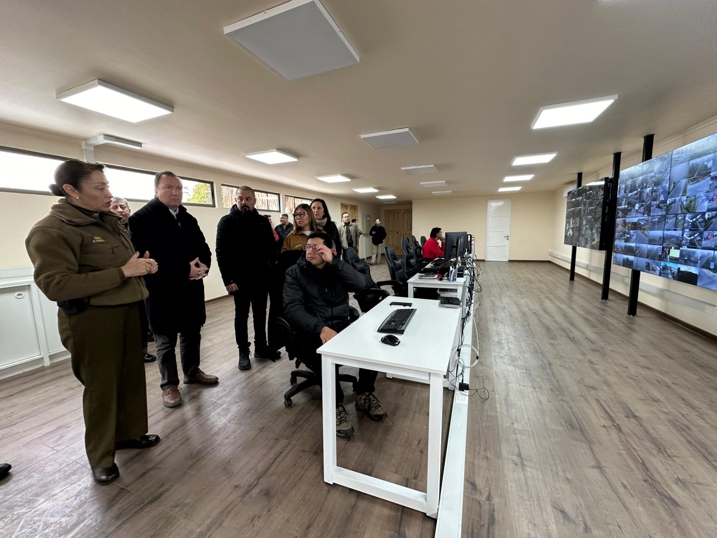 Con una visita inspectiva a las nuevas instalaciones de la central de monitoreo ubicada en la Tercera Comisaría de Carabineros de Talca, el alcalde Juan Carlos Díaz, junto a la jefa de la Zona de Carabineros “Maule”, general Maureen Espinoza, verificaron el funcionamiento de las instalaciones que permitirán el control de una mayor cantidad de cámaras de televigilancia y la operación de la aplicación de botón de pánico que se ha trabajado desde el municipio junto a almaceneros y conductores de la locomoción colectiva.