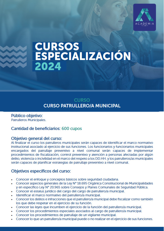 La Subsecretaría de Desarrollo Regional y Administrativo (Subdere) junto a la Subsecretaría de Prevención del Delito, en un trabajo colaborativo, ofrecen herramientas de capacitación a los funcionarios municipales y del Gobierno Regional en materias preventivas con los cursos de “Patrullero/a Municipal” y “Operador de Cámaras y Central de Monitoreo”.
