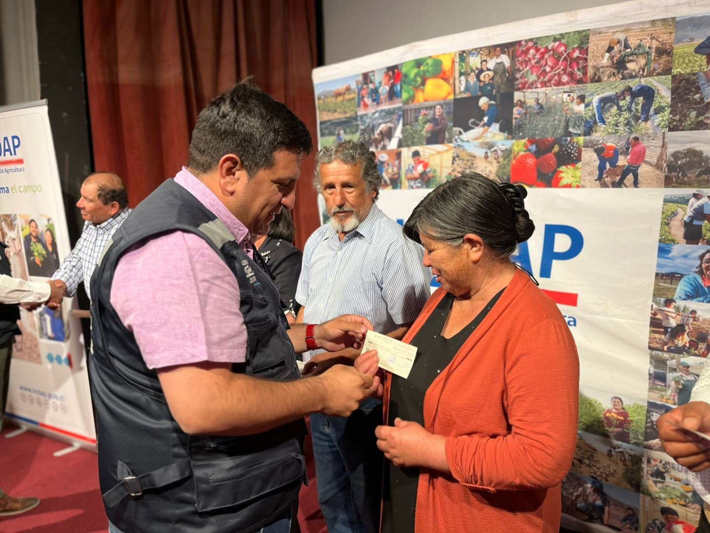 Fueron 48 productores que sufrieron con los temporales de junio y agosto de 2023, y que recibieron de parte del delegado presidencial regional, Humberto Aqueveque Díaz; la seremi de Agricultura, Claudia Ramos, y el director de Indap, Jorge Céspedes, el pago de los recursos comprometidos.