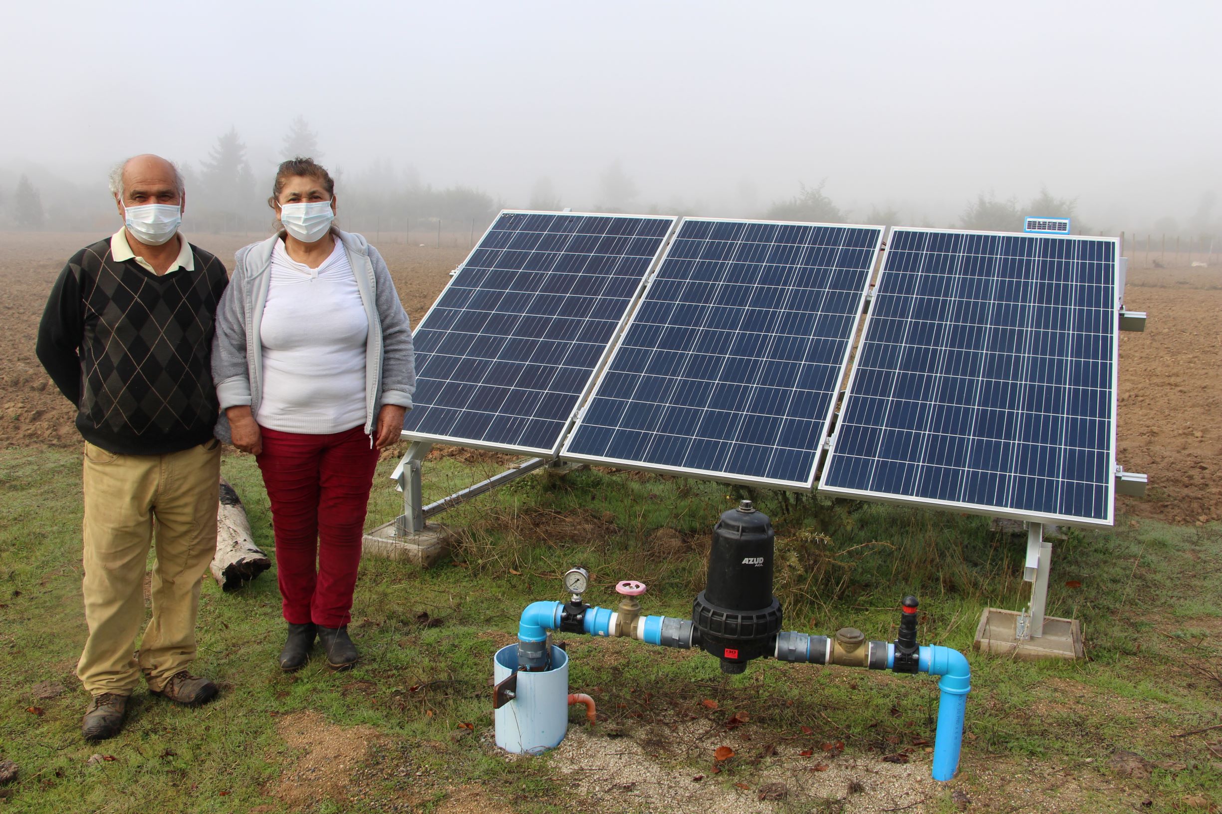 Gracias a un sistema de riego fotovoltaico, financiado a través de INDAP, esta agricultura ha logrado producir praderas para la alimentación de sus animales, producir cebollas, zapallos y otras hortalizas.
